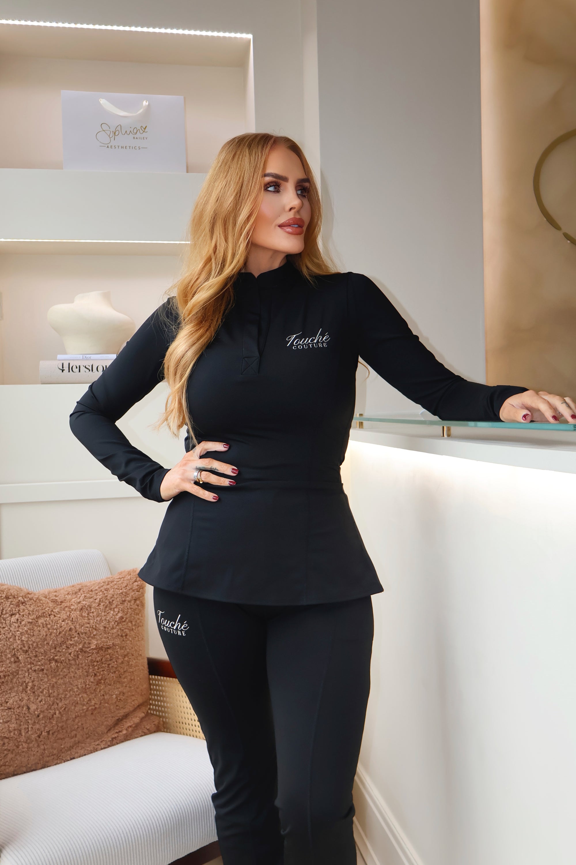 Every piece in the Touché Couture collection is thoughtfully designed to be flattering, made with premium fabrics that move with you—whether you're in the treatment room or out and about. At Touché Couture, we believe you shouldn't have to choose between looking polished and feeling at ease.